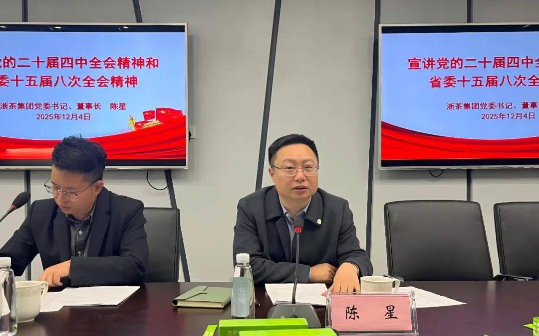 12月4日,浙茶集团党委书记、董事长陈星赴九宇有机公司调研并宣讲党的二十届四中全会精神和省委十五届八次全会精神。九宇有机公司党支部党员、经营骨干和青年代表参加会议。